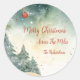 "Across the Miles" is a fine and sometimes needed sentiment for Christmas that helps you connect with distant relatives or friends throughout the holiday season. This rustic vintage watercolor image features green pine trees in a snowy forest. All the red text on these holiday stickers can be edited. Be sure to change the example names to those you want here.