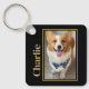 Honour your beloved companion and treasure the memories with a personalised pet memorial photo keychain, featuring a unique gold heart and border design. This plaque makes a heartfelt gift for yourself, family, or friends, serving as a beautiful tribute to a cherished dog. We hope this keepsake brings you comfort, peace, and fond recollections of your furry friend. Add your favourite photo. Black chic background.