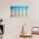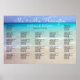 Wedding seating chart poster with a tropical image of a turquoise ocean stretching to the horizon, and waves upon the sand. "Mr. and Mrs." with married last name, can be printed along the top, with first names of the newlyweds beneath. Also include the wedding date. Use the 22 separate text lists to show guests to their tables alphabetically. Simply delete any sections you won't need.