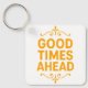 "Good Times Ahead" acrylic keychain. A positive, motivational accessory perfect for keys, bags, or gifts. Features a stylish, uplifting quote in vibrant orange on a square, double-sided design. Customize with your own text!