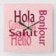 Say hello in five languages with a pink wall clock. This clock will add a beautiful colour to your wall, it is perfect for girls rooms decorations.