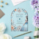 ACRYLIC Quinceañera Blue Silver Peach Dress Floral Invitations