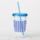 Blue 3-D rings are interlocked, forming a chain mail look.