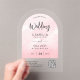This modern acrylic wedding Invitation can be clear or frosted, rectangle or arch shaped as desired to suit your needs. You can change the colour of the text in design tools.