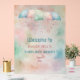 Celebrate this mum's baby shower with this cute acrylic welcome sign, in blue, pink and green shades on an umbrella raining hearts.