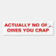 ACTUALLY NO ONE OWES YOU CRAP BUMPER STICKER