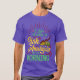I give wanted to give this a 4 instead of a 5 because these Basic DARK T0shirts run unexpectedly SLIM or Narrow. Which is great if you do not have a potbelly, but I have a paunch. It isn't the shirt's fault that I've got a beer belly. The design and shirt itself is a quality cotton shirt. The color is more of a deep purple, but still a very pretty color. The Basic DARK T-shirts run a bit SLIMMER than the Basic Ts. The neck is a fraction narrower (or seems to be narrower) also. I'm a paunchy middle-aged woman and my neck is 12 inches (31cm) thick and the neckline fell about the same as in the photo of the man, and I had the desire to tug it a bit. So if you're a thick necked man or like loose shirts, be aware these are slimmer shirts. Once I get rid of my lockdown paunch it'll look great. The shirt washed well in cold water with no apparent bleeding. We don't have a dryer, so it hung dry. Did not shrink. Love the colors and the design. The design looks smaller on my shirt than it does on the model on-line. But still, it looks good on the shirt. The printing looks as it does on the model, just the size seems fractionally smaller. Washed garment in cold water, hung dry and design appeared unaffected.