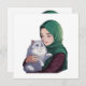Acute girl hug cute cat invitation