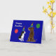 Cute fun springer spaniel and chocolate labrador retriever birthday card says Happy Birthday outside and "hope you get something very special" with dog biscuit cartoon inside.