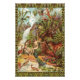 vintage art with painting illustration of adam and eve in the garden of eden with wildlife, waterfall, palms, and pond.