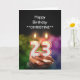 Burning 23rd cbirthday cake candles in the shape of numbers on top of a chocolate cupcake. Customise with the name of the birthday person. Suitable for a man or a woman. See the whole range of cards for ages and relationships in my store. All artwork copyright Norma Cornes
