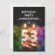 Add a name to customise this unique party invitation.A fun 53rd birthday party invitation with happy candle numbers burning on a chocolate cupcake. See the whole range of invitations and cards in my store.