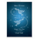 Add a name to customise this lovely card. Add the name of a friend or any relation to make a really personal Christmas card. A Christmas card showing two doves of peace carrying olive branches. The doves are drawn with lots of Christmas symbols and snowflakes. The doves are flying in a blue sky full of stars. A wonderful Christmas card that will be welcome by anybody.