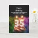 Burning 35th birthday cake candles in the shape of numbers on top of a chocolate cupcake. Customise with the name of the birthday person. Suitable for a man or a woman. See the whole range of cards for ages and relationships in my store. All artwork copyright Norma Cornes