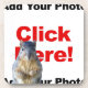 Custom Add-A-Squirrel To Any Photo! Add an adorable little squirrel to any photo you like in just a few easy steps. Simply upload your image and then click on Mr. Squirrel to move him around or change his size for a truly original and hilarious photobomb photograph that you can place on Buttons, Greeting Cards, Magnets, and even Holiday Ornaments. A Mister Squirrel custom photo is the perfect gift for squirrel lovers, animal lovers, or anyone who loves a good laugh. Simply click below "your photo here" on the right side of the screen to get started.