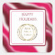 Add your business logo to this festive red and pink and white striped sticker. "Happy Holidays" written in modern elegant typography is editable. The candy cane groovy textured stripes are my original design. I took the vibrant colours from an original photograph of a peony flower. The Christmas holiday candy pattern and sparkle surround the simple modern text on white background. Personalise this label or sticker for your business promotional gifts, business holiday envelopes and holiday store wrapping this Christmas holiday season.