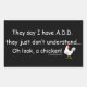 They say I have ADD, they just don't understand... Oh look, a chicken! - Attention Deficit Disorder Humour Saying. This design with a dark forest green background that can be customised. Black text / font.