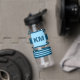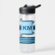 Add initials dark and pale blue with stripes water bottle