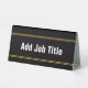 This black tabletop sign has white display text that you can edit to show a custom message such as your professional job title. The faux gold lines that are above and below the text are not made of foil.