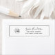 This return address label has a white background and black rectangle border. Add you logo, your name in calligraphy script and your return address.