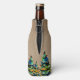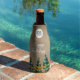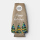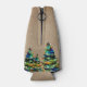 Rustic Add Logo Custom Text Christmas Tree Customer Holiday Bottle Cooler. Rustic beige background and watercolor colourful Christmas tree. Insert your logo into the template and customise the text, company name, address and contact information inside. Business promotion or giveaway for your clients and business partners.