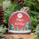 Add Logo Custom Text Christmas Tree Customer Holiday Snow Globe. Watercolor colourful Christmas trees. Insert your logo into the template and customise the text, company name, address and contact information on the backside. Business promotion or giveaway for your clients and business partners for holiday.