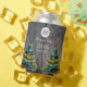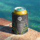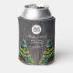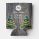 Wood Add your Logo Custom Text Christmas Tree Promotion Can Cooler. Watercolor colourful Christmas tree on a rustic dark wood print. Insert your logo into the template and customise the text, company name, address and contact information on the front and on the backside. Business promotion or giveaway for your clients and business partners.