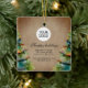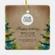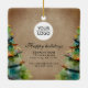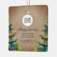 Rustic Add your Logo Custom Text Christmas Tree Promotion Ceramic Ornament. Rustic beige background and watercolor colourful Christmas tree. Insert your logo into the template and customise the text, company name, address and contact information on the front and on the backside. Business promotion or giveaway for your clients and business partners.