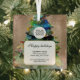 Add your Logo Custom Text Christmas Tree Promotion Glass Ornament. Watercolor colourful Christmas tree. Insert your logo into the template and customise the text, company name, address and contact information. Business promotion or giveaway for your clients and business partners.