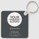 Elegant Add Logo Custom Text Promotion Anthracite Grey keychain. Insert your logo into the template and customise the text, company name, address and contact information. Business promotion or giveaway for your clients and business partners.