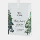 Add Logo Custom Text Snow Winter Tree Promotion Glass Ornament. Beautiful winter trees with snow on each side. Insert your logo into the template and customise the text, company name, address and contact information. Business promotion or giveaway for your clients and business partners.