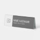 Simple Professional Modern Grey or any other colour and White Table Tent Sign. Replace "your logo here" image with an image of your logo, add your name, last name and title and you will get a sleek elegant desk name sign. All the information are on both sides of this clean design sign. For resizing or moving your logo image press on 'Customise it' button. Or contact the designer to do this for you or for a larger number of nameplates, for no extra cost. Minimalist clean design for corporate, business, office, for all employees.