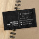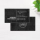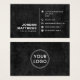 Modern, masculine business card design with template fields for name, company name/title, logo (photo or other graphic) and contact information including social media icons on a very dark gray, almost black, rough industrial concrete texture background. Change fonts, move and resize elements with the customization tool. Follow us on Facebook: @businessstationery for more products, news, sales and more.