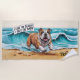 Add Name, Bulldog Dog Running in Waves Beach Towel