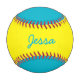 Fun, colourful baseball of aqua blue and yellow. Easily add a name to this baseball to personalise it!