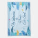 Add Name Edit Text She Shed Boho Blue Feathers Tea Towel