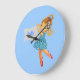 Add name Flower Fairy clock, girly pretty blue Large Clock