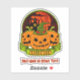 Pumpkin Heads with Witch Hat near Haunted House - for Halloween - Add the Name or Other Text you want - Celebrate Halloween with this great Sticker - you can change the sticker size - 6 sizes available. - See my store for lots more great Halloween Stickers, Party Table Settings and More.