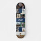 Customisable skateboard with a photo template to which you can add twelve of your own photos and your name in a distressed grunge font against a navy blue background. Cool photo collage skateboard personalised with your name and 12 photos in different sizes and shapes. Show off your favourite pics as you skate with this personalised skateboard printed with your name and your twelve favourite photos, perhaps of yourself skating, your pet, your crush, and your family.