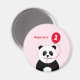 Personalise this magnet for the birthday child by adding their name - just type in the box. This cute panda has a 1st birthday balloon, in red to match the name, all on a pale pink background.