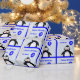 Personalise this cute penguin wrapping paper by adding a name in the box. Children love penguins, and this one has a bright blue 3rd birthday balloon. The default greeting is "Happy Birthday" but you can change this too. The tiled design ensures easy guidelines for cutting the paper to size.