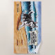 Add Name, Siberian Husky Splashing in Waves Dog Beach Towel