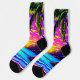 Add Name, Stylised Beach Sunset with Palm Tree Socks