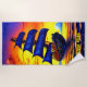 Abstract Stylised Blue Pirate Sailing Ship at Sunset - - See more great beach towels in my store.