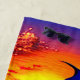 Add Name, Stylised Blue Pirate Sailing Ship Sunset Beach Towel
