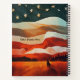 Add Name Text, Cowboy Riding into Flag Sunset Notebook