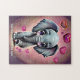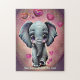 Add Name Text, Gray Baby Elephant with Pink Hearts Jigsaw Puzzle