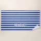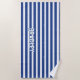 Add Name Text, Grungy Dark Blue White Stripes Beach Towel