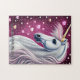 Add Name Text, Silver Mauve Unicorn, Hearts Purple Jigsaw Puzzle