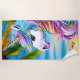 Add Name, White Unicorn with Rainbow Mane at the Beach Towel